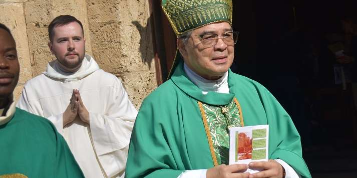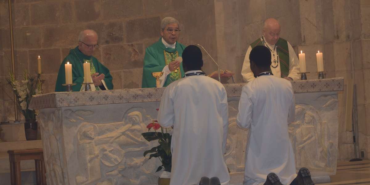 We were honored and happy that, His Excellency Archbishop Adolfo Tito Yllana, Nuncio to Israel and Cyprus and Apostolic Delegate to Palestine and Jerusalem, accepted our invitation to preside the Mass. He had met our Community during his diplomatic service in Budapest, Hungary. Present at the Mass were as well: Bishop William Shomali, Patriarchal Vicar for Jerusalem and Palestine, most of the White Fathers living in St. Ann’s, the priests of the Autumn Bethesda Session and members of the Salesian Community of Ratisbonne in Jerusalem. Two Salesian deacons served at Mass together with two students of the Missionaries of Africa. Members of various religious communities attended Mass as well as other friends of our Community.